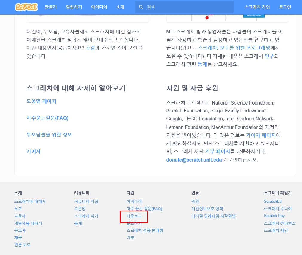 녹색창에서 스크래치를 검색하면 저 mit.가있는 사이트를 클릭하면 된다~